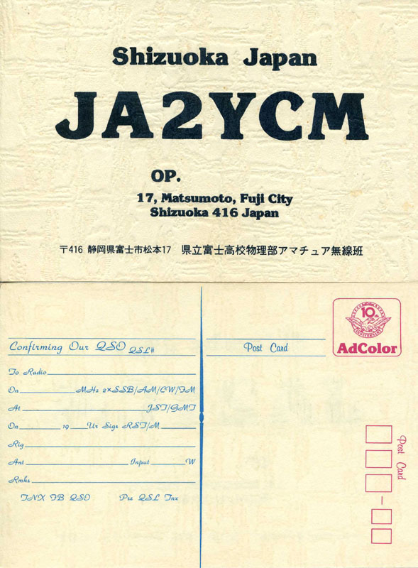 ’長屋の物理部室は無線班が占拠している状態で、放課後は日々交信に明け暮れていました。メインは7MHzでした。FT200というYAESUのHF機で、100W出してた記憶があります。アンテナ張りで、よく屋上に無断で上ってました。南北校舎間ダイポール張ったり、コンテスト参加等、意外とアクティブだったと思います。コンテストでは、夜通し行うため、夜中にこっそり校舎に忍び込んだり、十国峠でキャンプがてらやったこともありました。当時の顧問(物理の松原龍一先生)は結構理解があって、十国峠の時は半ば公認で、明け方、差し入れ付きで様子を見に来てくれました。