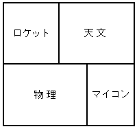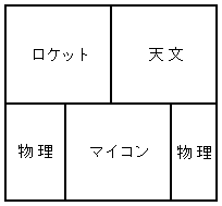 エマージェンシー! ロケット班に全滅の危機がでてきた。この2年で急成長を遂げた天文班が圧倒的な兵数(60VS3)でロケット班領へ攻め込んだ。ロケット班は、新たに1人の2年生を加えて抵抗したが、多勢に無勢、善戦むなしく、テーブル1つだけが領地になってしまった。この侵攻に乗じて、物理班とマイコン班は領土の奪回を目論んだが、天文班は余剰兵を南方に回して警戒を怠らなかった。