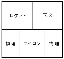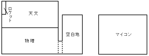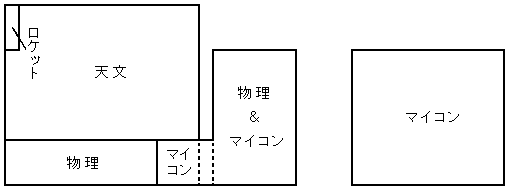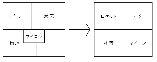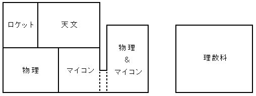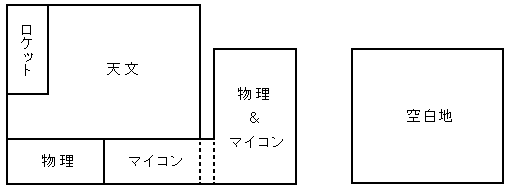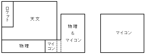 このような大豊作と大凶作のため、必然的にロケット班の領土はさらに圧迫されることになった。それどころか、テーブルがなくなってあぶれた天文班員がさらに増え、物理班、マイコン班は人の波に圧されて南側のテーブル一列まで追いやられた。「人海戦術」とはよく言ったものである。