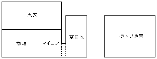 当時盗難が相次いだ為、GM(ぐれーとまじんがー)の「ここは本来生徒のいる場所じゃないんだよ。」の一言で、物理班が開拓した新天地「物理準備室」が没収されてしまった。そのため、付属していたマイコン班も追い出され、哀れな物理班は物理実験室に追いやられてしまった。しかし本当に哀れだったのは領土が半分になってしまった天文班であった。