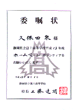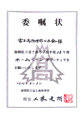 静岡県立富士高等学校からホームページボランティア委嘱を受け、物理部OB会ボランティア有志が