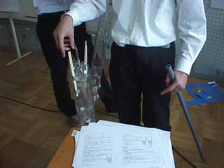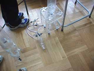 パネルにはロケットの圧力、水量を変えて 飛ばしたときの高度を測定したグラフと理 論値のグラフ。