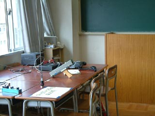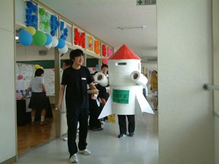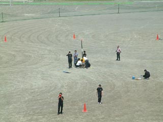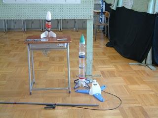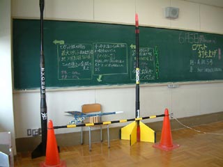校庭でロケット打ち上げ準備中。打上予定は午前1台、午後3台