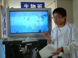 ヒドラ画像 分離した細胞を顕微鏡TV画像で観察
