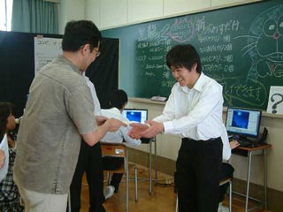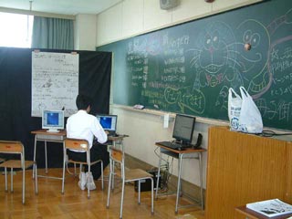 自作ゲーム実演中、冊子「Ah!!SKY」、CD配布など