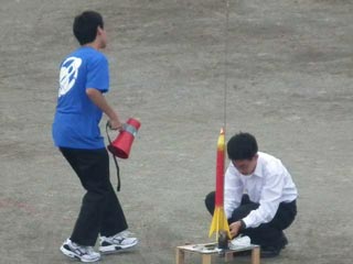 マイクロコントローラ開発ツールセットを物理班とマイコン班に寄贈。賞金袋の下に写っています。