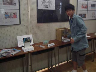 自作ゲーム実演中。他にパネル展示、冊子、CD配布。