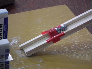 ピタゴラスイッチ。 拡大写真は今年のピタゴラスイッチの目玉装置。鉄球を上方に撃力移動させます。