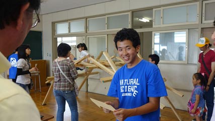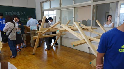 木製円弧状組構造橋(摩擦のみの構造です。人が渡っても壊れません)