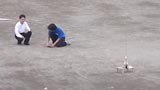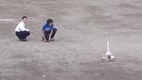 野球試合終了後。2段式機体。動画開始から5秒で1段目を切離して加速、8秒で本体分離するがパラシュート出ず |