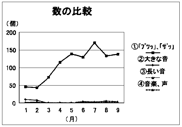 そして、これまでの記録をこの分類法によって分類し、それぞれのエコーの割合と、一ヶ月ごとに一時間の平均エコー数をもとめた。