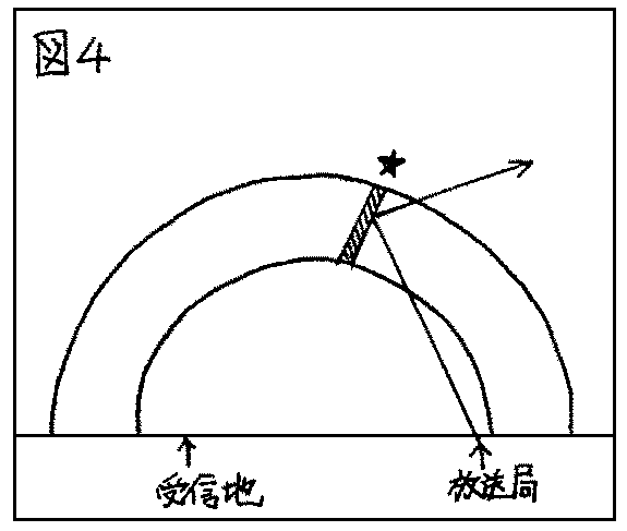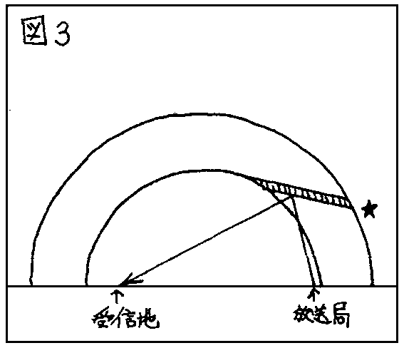 3. 6)の図1のように、電離柱が比較的横である場合は、FM電波が電離柱で鏡面反射してもエコーをとらえることができる。