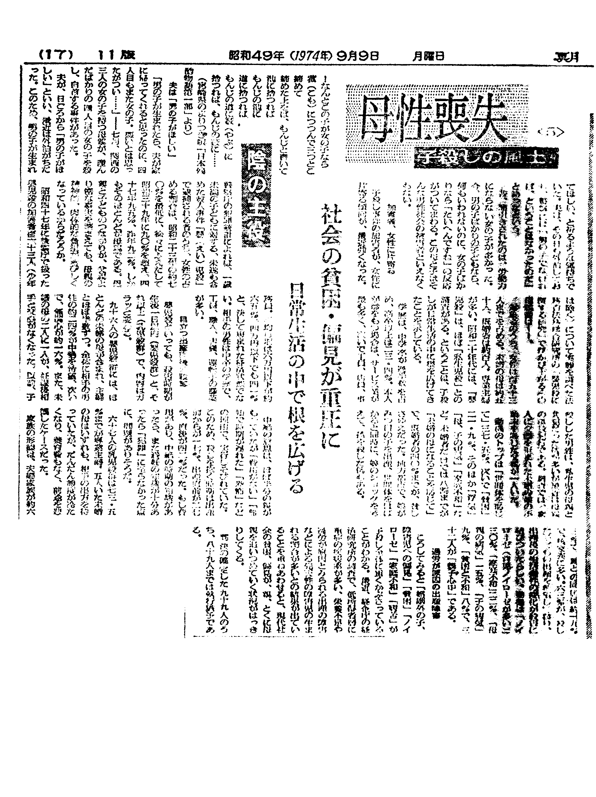 朝日新聞 昭和49年(1974年)9月9日(月) p17の記事