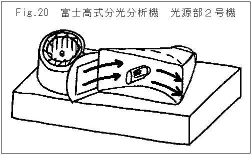 1号機の欠点を補うような2号機の製作に取りかかったのは49年の7月の下旬からであった。今回は、ランプ全域を囲むのではなく、ランプ後方のみを囲み、後方に発光される光を反射させ、光能力を最大限利用するように光のビームを作ろうとした。そこで考え出したのが自転車のヘッドライトの利用である。方形のライトの反射板のみをとり出し、中光部にハロゲンランプを設置した。冷却装置には、以前より強力なタービン式のファンを使った。このヘッドライトの反射板は実用化されているだけあり、反射能力はバツグン。ついで熱反射能力もグンバツ。なんと1〜2mm離した紙から煙がモクモク。強力ファンを使ったのも無意味になってしまう結果であった。しかし、この反射能力(光の)は捨て切れず、小型欠陥水却式クーラーをファンの代わりに使ってみたりしたが、数十秒のうちに200℃前後に温度が上昇するのでは、おちついて実験もできやしない。結局また、2号機の実用化の道は開けず、3号機に挑戦することになった。