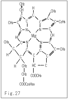 植物の必須養素として現在知られているものには、大気に由来する(C、H、O、N)の4種と、土壌のもとである岩石に由来する(K、Ca、Mg、P、N、S、Fe、Cu、Mn、Zn、Mo、B、Cl)の13種がある。このうち岩石に由来するマグネシウム(Mg)はクロロフィル分子の重要な構成元素として、その分子の中央を占め、右図のように4個のピロール環と結びついている。マグネシウム(Mg)欠乏状態で育てた植物の葉には、クロロフィル欠損症状(クロローシス白化)があらわれるというが、実際にマグネシウム(Mg)を除いて植物を栽培した場合、この植物の光合成あるいは、吸光特性はどのように変化するであろうか。この実験を通して、生育過程の相違(マグネシウムの欠乏状態)における植物の吸光特性の変化を調べる。