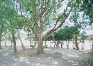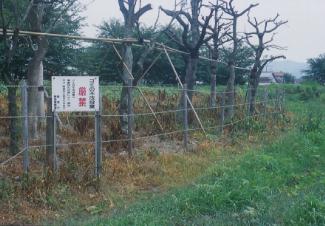 | 地表は硬い裸地、向こうのグランドは除草剤。