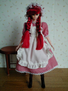 ノア・ド・ローム中野店でお迎えしたリナ様。 髪の色はレッドで、ツーテール三つ編みお下げ髪。 この日の収穫はお下げの色違いばかり3人。 私の好みでウチにはカジュアルっぽいドレスばかりで、お下げに似合いそうなカントリーっぽいドレスがあまり無いのです。 っつーワケで、ドレスはスィートカントリージェニーから追い剥ぎしました。 | |