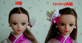 また、初版は髪が後ろでゴムで束ねられていますが、 TOTOCO再版では束ねられていません。 髪飾りの位置も異なります。 |