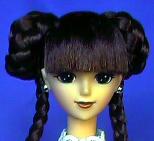 二つのお団子と三つ編みが特徴的なリナ様。 こーいう編み上げた髪型は自分では出来ないので、とても有り難いです。 髪の色はブルネット。 | |