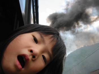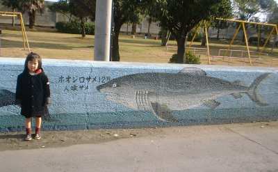 2001.02.17 興津駅近くの公園に夏生とお出かけ。そこはペイントされた実物大の魚の絵が楽しいが不思議な空間です。