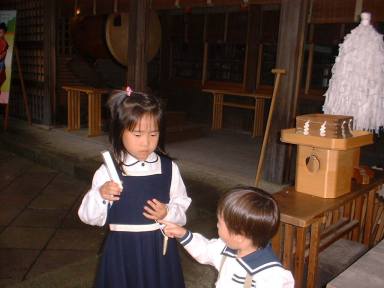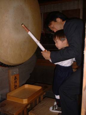 2001.11.03 竜生の七五三は静岡県護国神社。太鼓をたたいて健康を祈願します。