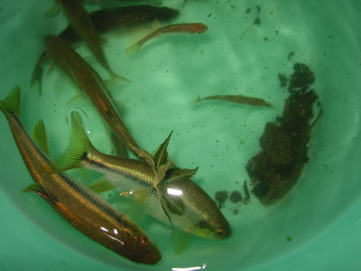 カワムツ、オイカワ、ハヤ、シマドジョウ