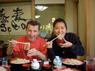 この日は、スイスから遥々やってきたアンディーさんと憲子さんです。アンディーさんはとても明るく楽しい方でした。 今度、スイスに『そば打ちの出張』で呼んでくださいね。
