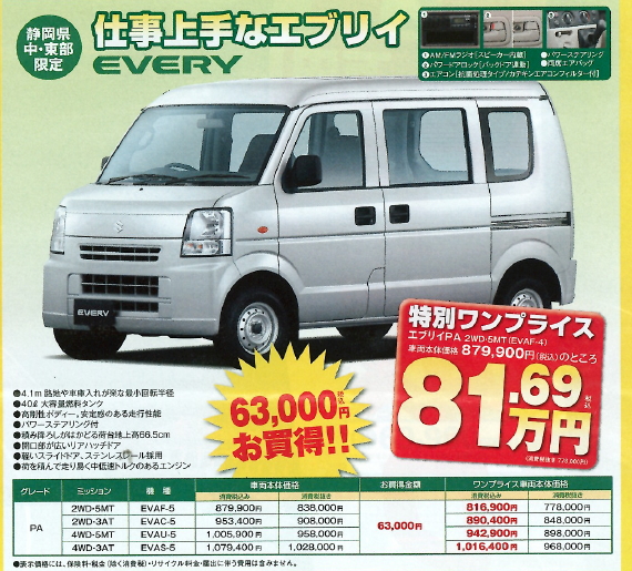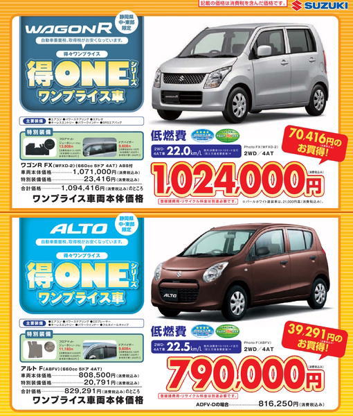 | スズキ販売静岡葵 静岡市葵区昭府2丁目24-26 054-272-2061 (有)白岩モータース 静岡市葵区本通9丁目19-2 054-252-7532 | |||||||||