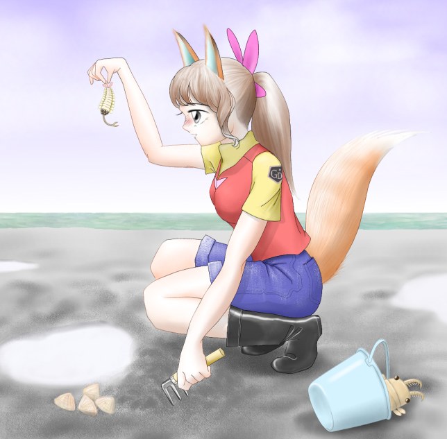 ゴンドワナ大陸6丁目バージェス海岸で潮干狩り。 そういやこの娘の服装、どっかで見たような...。