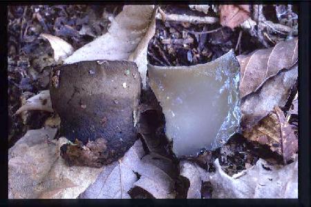 とても変てこですが、これでもきのこです。あんな ものがどうやって生えているのだろう? ごろんとし た中身には何が入っているだろう?..図鑑で見たとき から、ずっと気になっていましたが、ようやく見つけ ることができました。