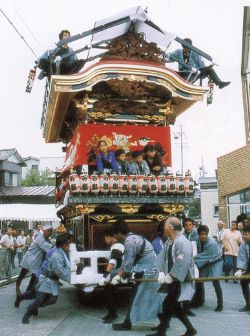 | 大正6年9月に再建された。大工は中町住人坂田歌吉。 彫刻は、信州住人林萬吉、名古屋住人彫松の作。 天幕は明治13年、東京三越にて製作。費用200円。 田町の船頭、江原甚蔵が買い求め船で運んだ。 | ||||