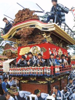 | 明治39年に再建された。大工は中町住人坂田歌吉。 彫刻は大正6年、名古屋住人彫松、半田住人新美常次郎、浜松住人早瀬利三郎の作。 塗装は昭和4年、袋井住人山岡覚三による。 天幕は平成元年に再製された。 | ||||