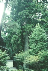 半僧杉は本堂を少し下った3階建ての僧坊の傍らにあって、建物と高さを競うように聳えていた。過去の大火にも耐えた立派な巨杉であった。