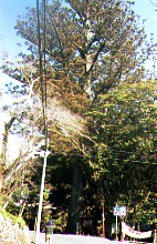 イチイガシとしては静岡県の最大木である。社殿右手の石垣に組み込まれたようになっている。樹皮は黴か苔か地衣類に覆われて汚いが樹勢は良いらしく、枝を高く延ばしている。