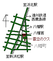 11世紀に陸奥出陣の途中、八幡太郎義家が参籠し武運を祈って、社前の楠の下に旗を立てた故事から、その楠は『御旗楠』と呼ばれていたが、16世紀、三方ヶ原合戦に破れた家康が当地へ逃れ、義家ゆかりの楠の洞へ潜んで武田軍の追手をかわし、合わせて武運の長久を祈った。その時、楠の上に瑞雲が立ち昇り、神霊が白馬に跨がり浜松城方面に飛び立った。吉兆に勇躍城に帰り、犀ヶ淵で敵兵を防いで信玄の浜松城入場を防ぐことが出来た。それ以来『御旗楠』は『雲立楠』と呼ばれるようになった。