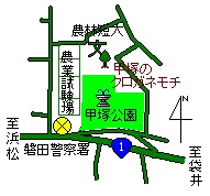 国道1号線を横切って、磐田原の台地に登り、甲塚公園に入る。筆者の勤める会社の西部営業所のすぐ近くである。元静岡大学農学部の跡地がスポーツ公園になっている。標識に導かれて公園の奥へ入った。