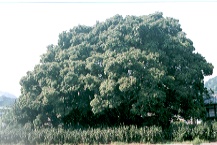 ヤマモモの木は裏の畑いっぱいに枝を広げていた。道路から写真を撮らせていただく。
