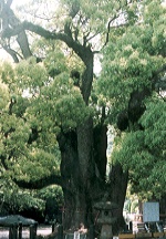 根元近くで2つの分かれた幹それぞれが巨木の要件を十二分に満たしている、存在感たっぷりのクスであった。通路側に伸びた直径1mほどの枝が最近切られたようで、腐食止めの塗料がまだ新しかった。また前面で勇姿のじゃまになっていた太い針葉樹が根元から切られて見学者には有り難いような残念なような気分であった。