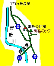 静岡から安部川の左岸を遡り、牛妻を通過し郷島に至る。旧道を少し入ると、郷島の浅間神社がある。