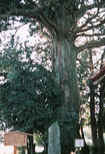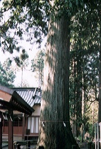 東名高速道路の御殿場インターを降りて、国道138号線を北西に向かい、市街地を外れた仁杉(ひとすぎ)交差点を右に折れ700mほど走ると、前方右手に巨木が見えてくる。『宝永の杉』は子神社の境内、社殿の左に圧倒的な存在感であった。太さも木立ちの勢いも一級品であった。