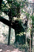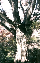 『函南原生林のブナ』より少し登ったところにbPのアカガシ(最左の写真)はあった。全体に林の中にあって暗くて判りにくいが、東に幹と同じほど太い枝が伸びていた。