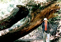 下る途中登山道をふさぐように巨木が倒れていた(右の写真)。傍らの説明板によるとこの巨木はアカガシで「平成元年8月の台風により倒れたものです。数回の落雷により幹に空洞ができ、推定樹齢四百年の『あかがし』も、自然の猛威には勝てず倒れたのですが、四百年の樹齢は人間の百才に相当する高齢です。」自然の森では常にこのように新陳代謝が行われている。倒れた木が次代の木を育てる肥料となっているのだ。