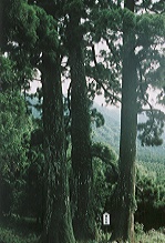 『寒天の御礼杉』は林道から150mほど山道下った少し開けた谷間に3本並んであった。国有林の樹木の成長状況を見るために伐採し残した杉で、まだまだ成長期にあり、巨木としての風格が出るのはこれからであろう。