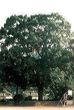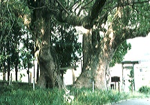 下田市街から国道414号下田街道を北に2kmほど進み、蓮台寺温泉の標識に従って左折し、橋を渡ったすぐの稲生沢小学校にクヌギの巨木はある。夏のこの時期、西から下田を抜けるには大変な渋滞を抜けなくてはならない。何とか抜け道を捜して抜けようとしたが、下田市街で結局国道136号へ出ねばならず、陽が傾いてしまった。