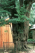 この二本は幼木が生長の過程で結合したもので根元が地上面で一体化している。樹幹の根元近くにはそれぞれ男女を象徴する支幹の切り跡と窪みがあって、夫婦和合の御利益がある神木とされている。