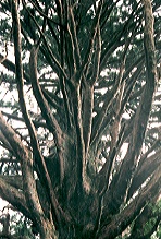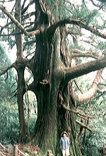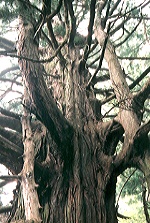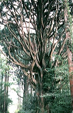 見上げると太い下枝が枯れて残って、まるで千手観音の手のように無数に伸びている。『お化け杉』とはよく名付けたもので、こんな巨木にはお目にかかったことはなかった。『お化け杉』を中心に数本の巨木とそれを囲む杉林が、離れ小島のように残されていた。 |