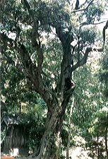帰り道に天竜市下阿多古の駐在所の隣りにスギの巨木(右の写真)を見た。『巨樹探検』で「京都の『花脊の台スギ』そっくりの見事なスギ」と述べている杉であろう。平岡さんはこのスギは素通りして『嶺樹庵のイロハモミジ』に向っている。