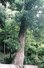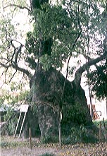 太い主幹の上部が失われ、ダルマさんのようになった幹の芯から新しい幹が伸びて、巨木が再生されつつあるといった不思議な樹様を持ったクスノキである。根元が空洞になり、残った根が踏ん張った四肢に見えて、幹に宿った蔓草が胴体を被った獣毛のようで、草食の首長恐竜そっくりの異相であった。