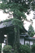 真珠院ではちょうど葬式が終り片付けをしているところであった。山門を入ったすぐ左にこのナギがあった。根元近くに大きい瘤があった。