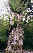 7月11日〜15日の間、台湾に行ってきた。 台湾でも巨木を見たいと思い、『最後の巨樹たち』で台湾の巨樹を紹介している写真家の吉田繁さんにメールで問い合わせ、親切に教えて頂いて出発した。 計画も立てず台湾に降り立って、巨木に出くわすことなどずだい無理な話であった。時間をつくり、せめて阿里山に登って、有名な紅檜神木だけでもみたいと、嘉義市の駅前で7月12日朝7時10分のバスを待っていた。ところが前夜の熱帯低気圧で道路が不通になっていることが判明し、バスが出なくなってしまった。登山鉄道は通じていたようだったが、登山鉄道では本数が少なく、当日に戻って来るのは難しく思われ、涙を呑んだ。 代わりに台南市に行き、観光地を巡った。台南は歴史の町というから巨木にも会えるかも知れないと思ったからだ。安平古堡・赤嵌楼・大南門址・孔子廟などを周り、何本か名も無い巨木に会って来た。写真は台南市の孔子廟で撮影した榕樹(ガジュマル)で、幹周り推定8mほど。細い幹が束になって一本になったような幹で、太さの割には樹齢は100年も経っていないかもしれない。 夕方、本屋さんに行き、台湾の巨木を紹介した本を2冊買って来た。「巨木関連書籍の紹介」で紹介している 「台湾老樹之旅」及び「台湾的老樹」という本である。 ところで拙宅の近くを走る「大井川鉄道」は「阿里山森林鉄道」と姉妹鉄道になっていることを台湾まで出かけて初めて知った。 |